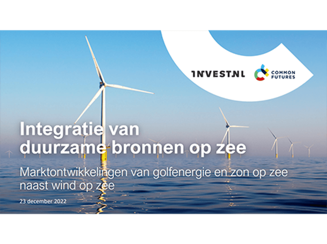 Vanuit Invest-NL zien we potentie om het energielandschap te verbreden en de mogelijke maatschappelijke waarde hiervan te verhogen. De afgelopen maanden heeft Invest-NL samen met Common Futures de kansen en barrières om golfenergie en zon op zee te realiseren in windparken op de Nederlandse Noordzee verkend.